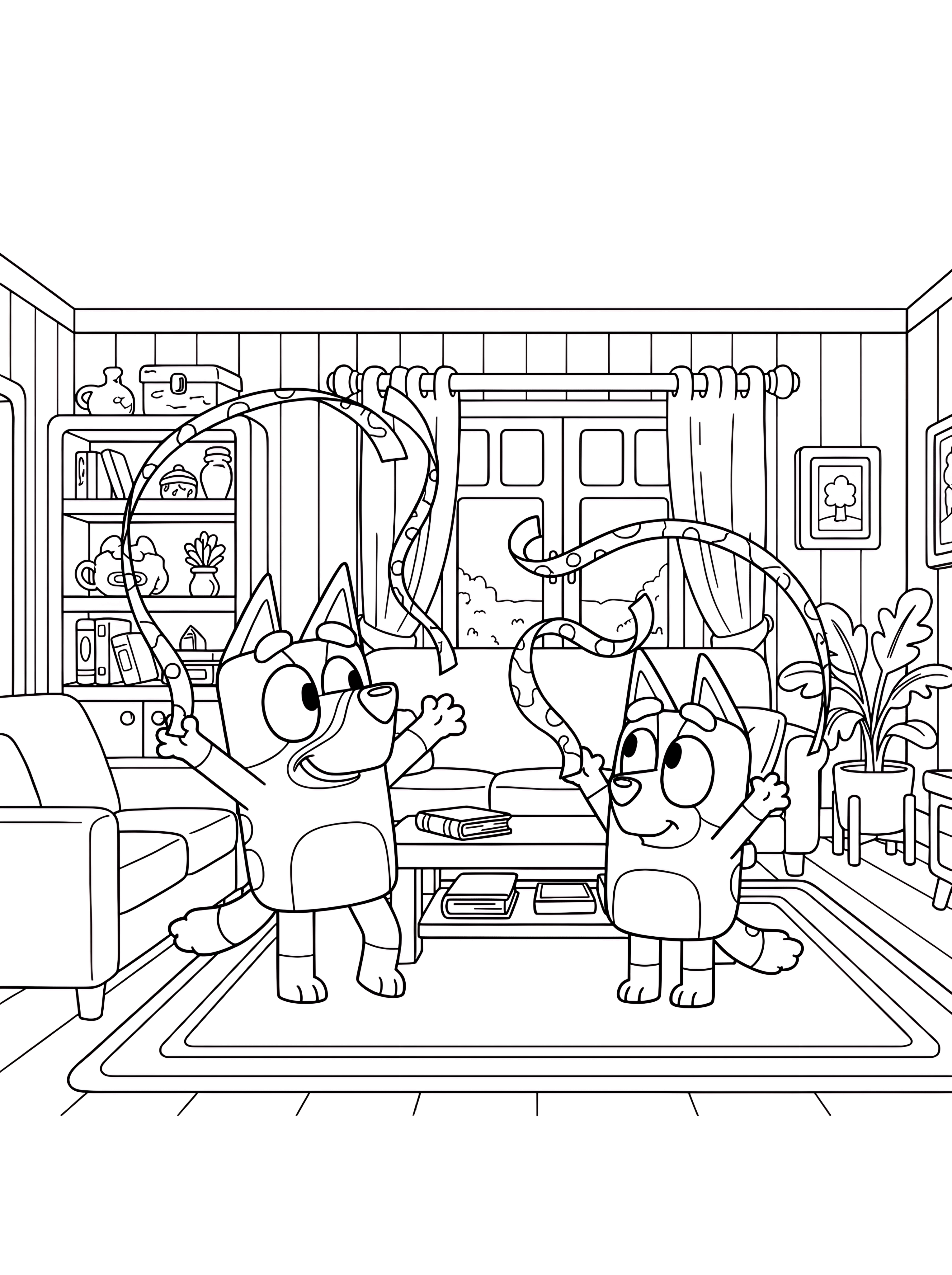 Swirl through a whirlwind of polka-dotted ribbons as the Heeler sisters transform their living room into a rhythmic dance floor. Grabbing your favorite markers is the only way to capture the domestic magic hidden within every lush houseplant and shelf-side trinket.